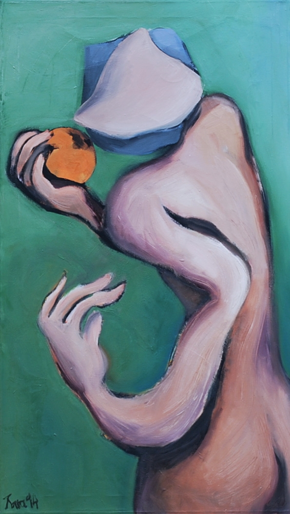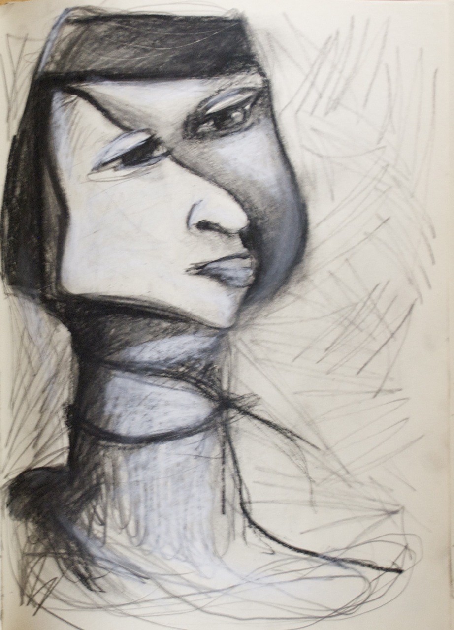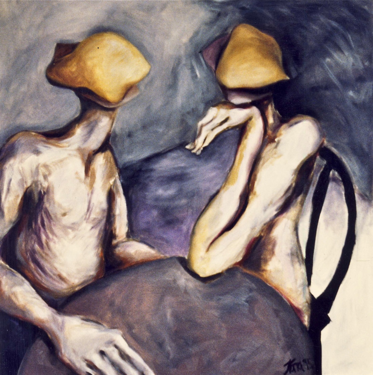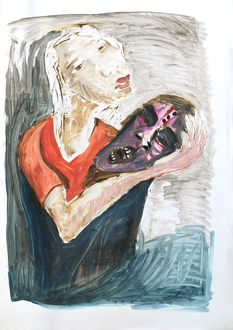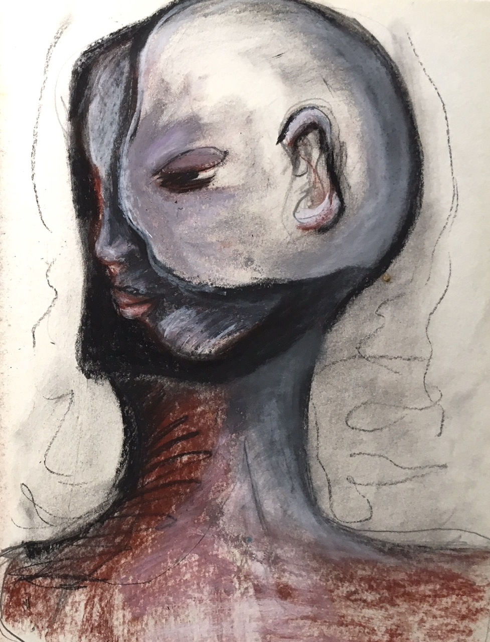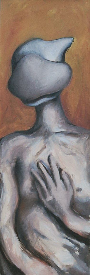 Während eines Retreats intensivierte sich die Wahrnehmung. Alle Sinne wurden geschärft und damit durchlässiger, um Schönheit, einzigartige Düfte und echte Geschmacksnuancen wahrzunehmen. Den wahrnehmenden Kopf malte ich mit den Formen, wie ich sie in der abstrakten Malerei mit dem Titel -Gedanken und Emotionen- erarbeitet hatte. Dabei füllte eine Form das Gesichtsfeld aus, eine weitere agierte im Hintergrund. Je zwei Formen bildeten zusammen den Kopf.