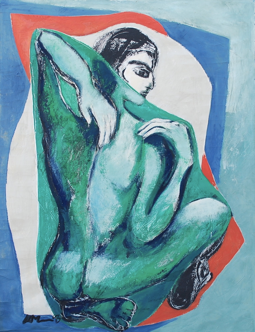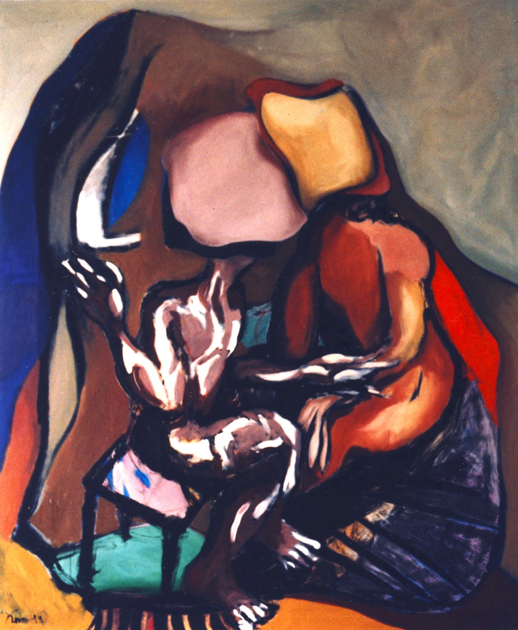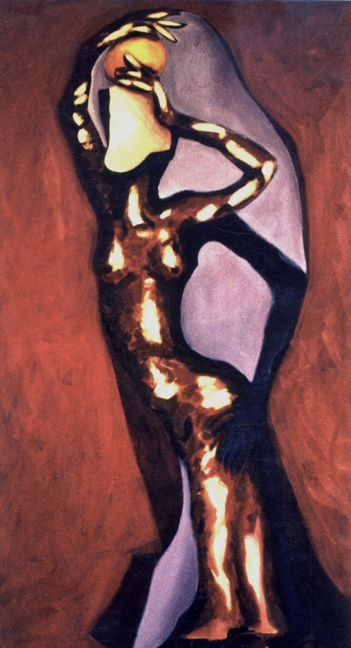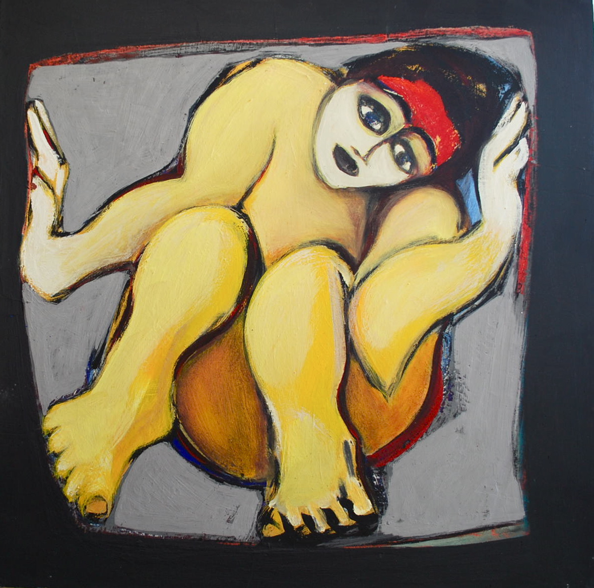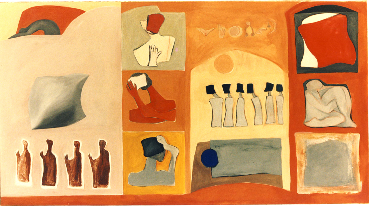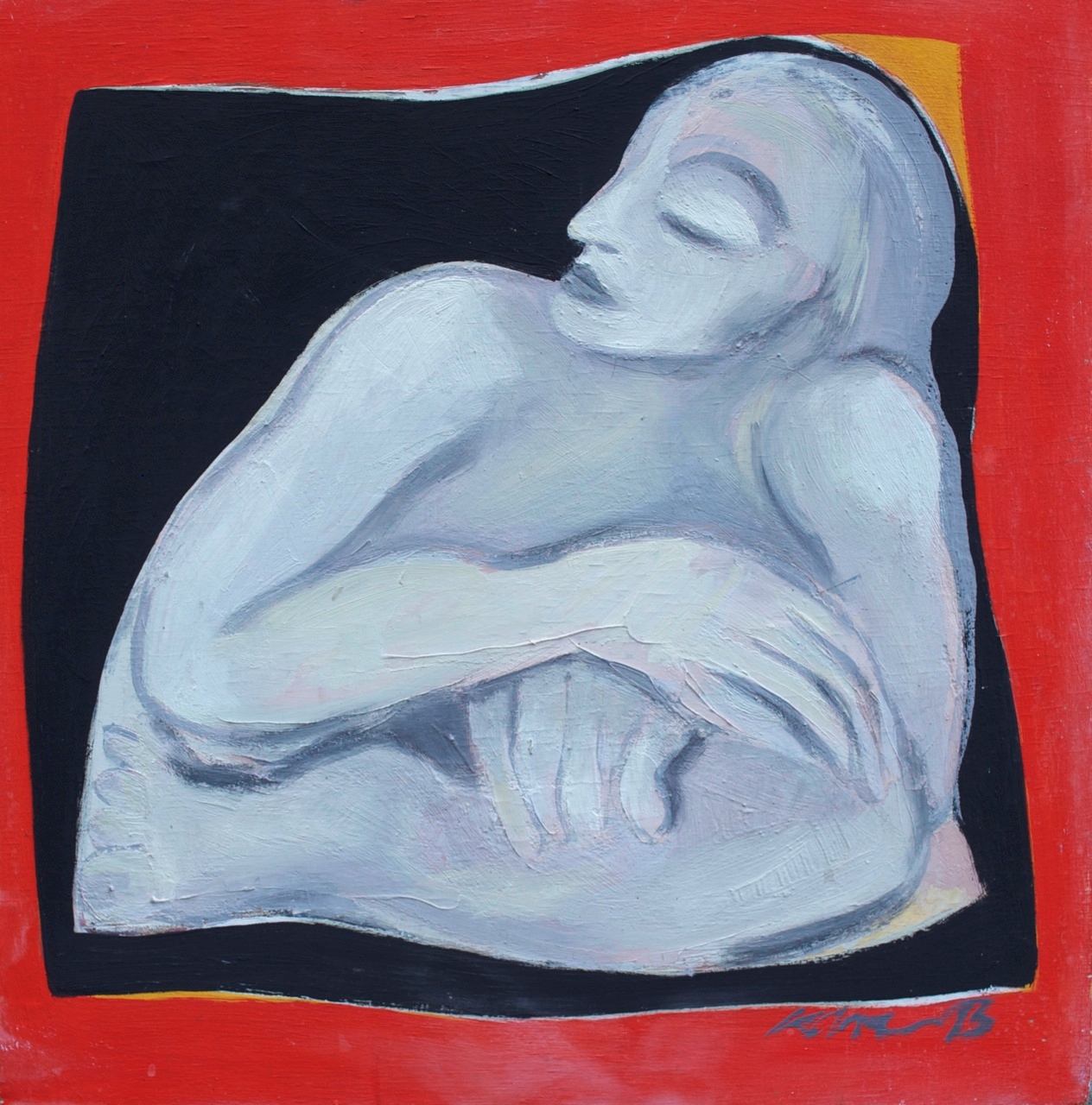 Während eines Retreats intensivierte sich die Wahrnehmung. Alle Sinne wurden geschärft und damit durchlässiger, um Schönheit, einzigartige Düfte und echte Geschmacksnuancen wahrzunehmen. Den wahrnehmenden Kopf malte ich mit den Formen, wie ich sie in der abstrakten Malerei mit dem Titel -Gedanken und Emotionen- erarbeitet hatte. Dabei füllte eine Form das Gesichtsfeld aus, eine weitere agierte im Hintergrund. Je zwei Formen bildeten zusammen den Kopf.