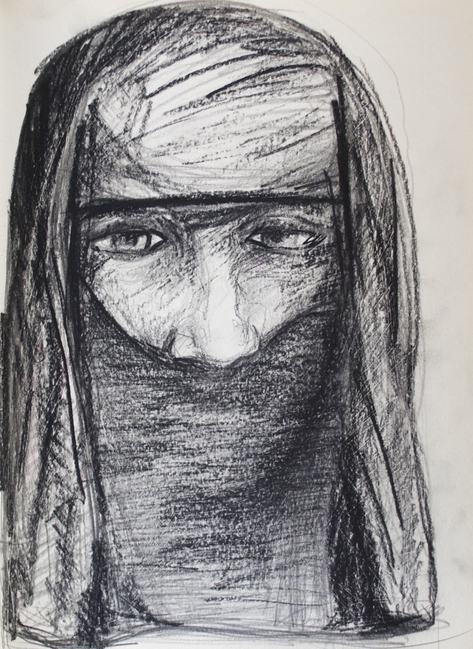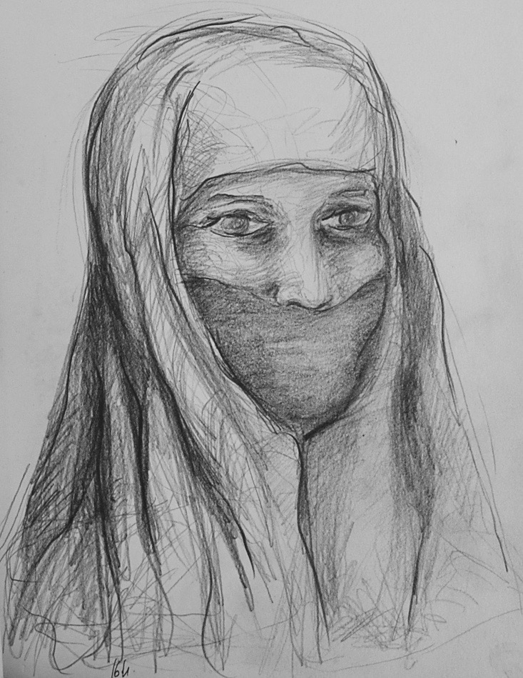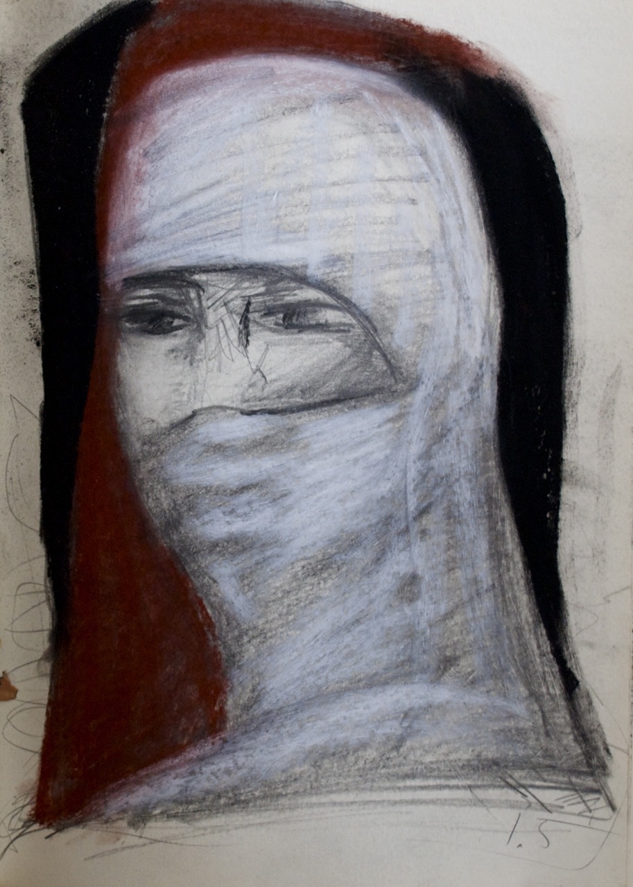Der Auftakt für einen entscheidenden Themenwechsel in meiner Malerei gab eine Reise ins südliche Marokko. Dort hoben die strahlenden Farben unter tiefblauem Himmel meine Gefühle von Enge und Begrenztheit auf, die ich in der Großstadt empfunden hatte. Gleichzeitig war ich durch die Kleidung, mit denen sich marokkanische Frauen verschleierten, an Frauen erinnert, die in ihrem Selbstausdruck eingeschränkt und beschädigt waren.